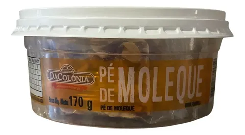 O pé de moleque DaColônia 170g é um doce tradicional brasileiro feito à base de amendoim torrado e açúcar ou rapadura, com origem no período colonial.